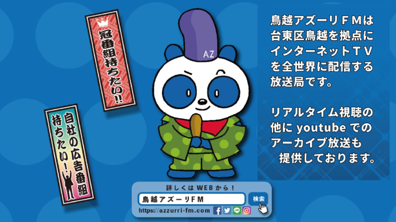 『日本一尖った放送局』である鳥越アズーリFMは、インターネットテレビ型ラジオという、新たなジャンルの放送局として、2020年に開局をしました!