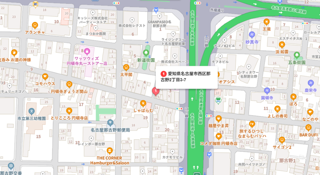 愛知県名古屋市西区那古野2-3-7(最寄駅:国際センター駅)